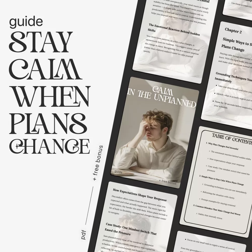 This guide is perfect for anyone who struggles with uncertainty or gets easily thrown off when things don’t go according to plan. Whether you’re a planner, creative thinker, parent, or goal-setter, Calm in the Unplanned gives you practical ways to stay calm when plans change and helps you cultivate emotional adaptability over time.