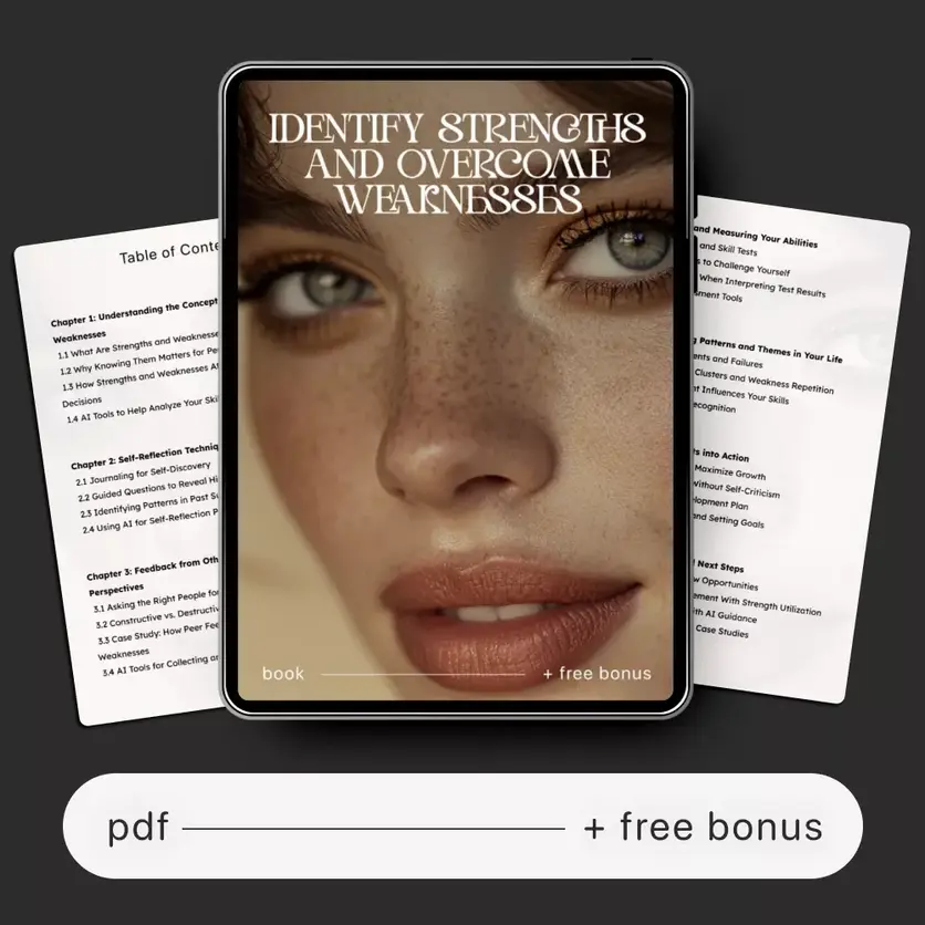 Identify Strengths and Overcome Weaknesses is a practical and insightful eBook designed to help you understand yourself on a deeper level. Whether you want to grow personally, advance your goals, or break free from recurring challenges, this digital guide walks you step-by-step through the process of uncovering your hidden talents and improving where it matters most. It’s your personalized roadmap to mastering how to identify your strengths and weaknesses — and using that awareness to create lasting change.