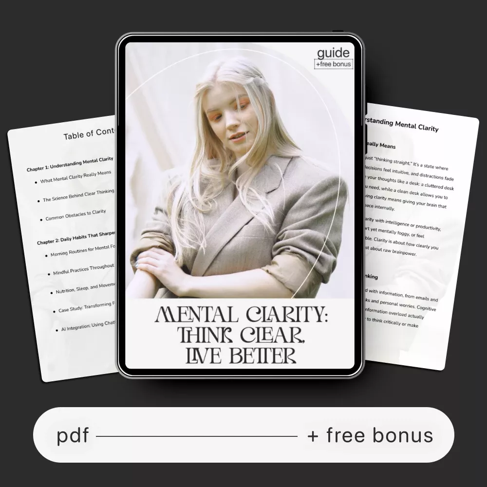 It’s time to declutter your thoughts and reclaim your focus. Download Mental Clarity: Think Clear, Live Better now and discover practical, sustainable ways to build mental clarity every day. Take the first step toward a calmer, sharper, and more productive life—your clearer mind starts here.