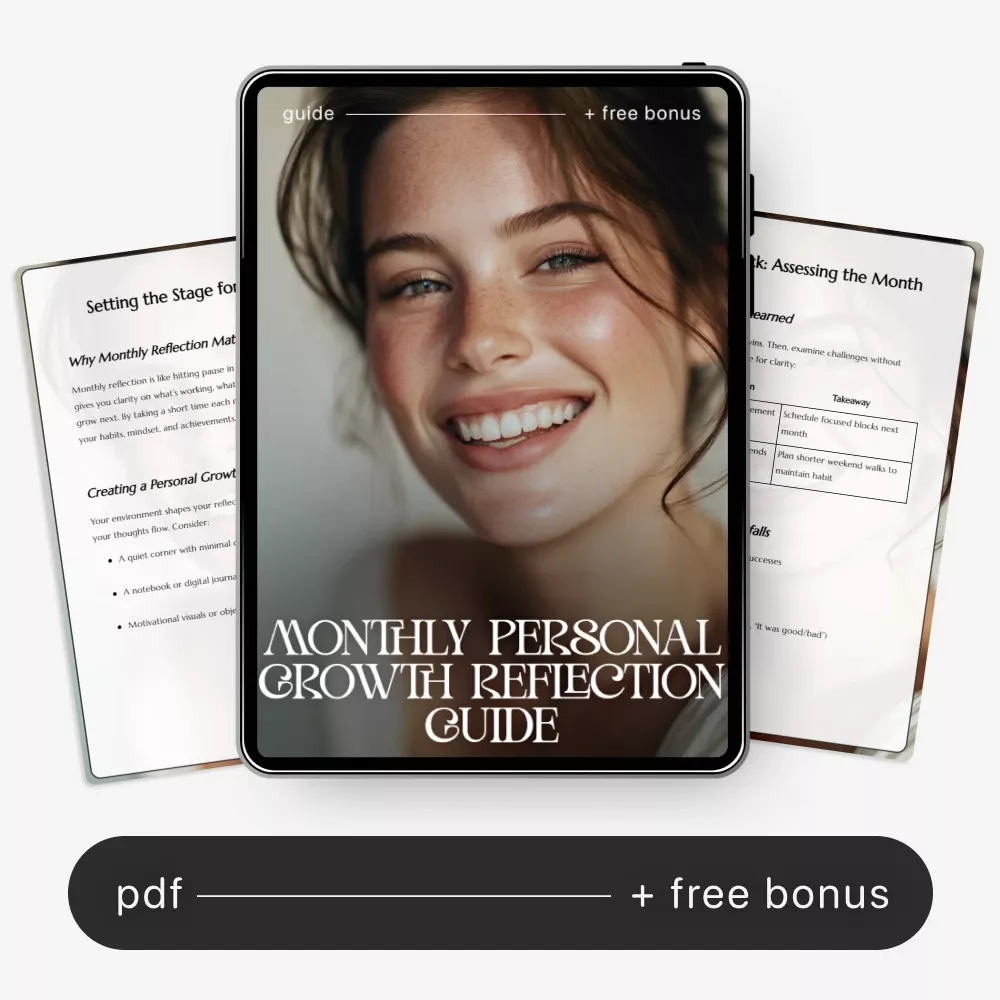 If you’re ready to stop drifting and start growing with intention, the Monthly Personal Growth Reflection Guide is your next step. Make your monthly personal growth reflection simple, powerful, and life-changing.