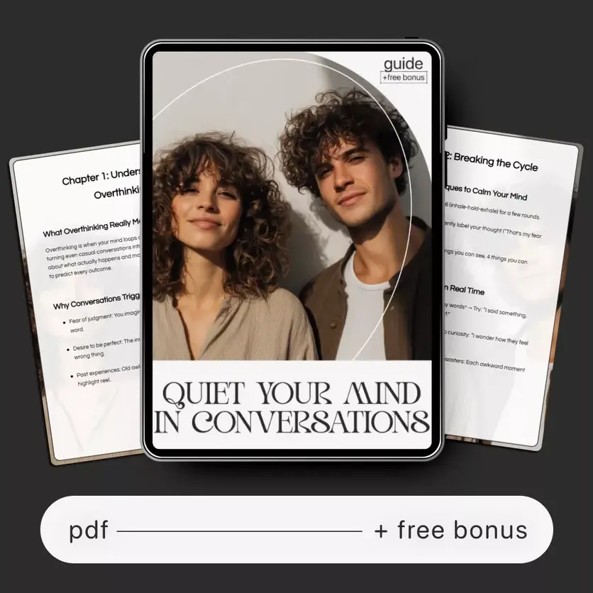 Ready to finally quiet the noise and feel confident when you speak? Download Quiet Your Mind in Conversations today and start mastering how to stop overthinking every conversation with simple tools that fit into your real life.