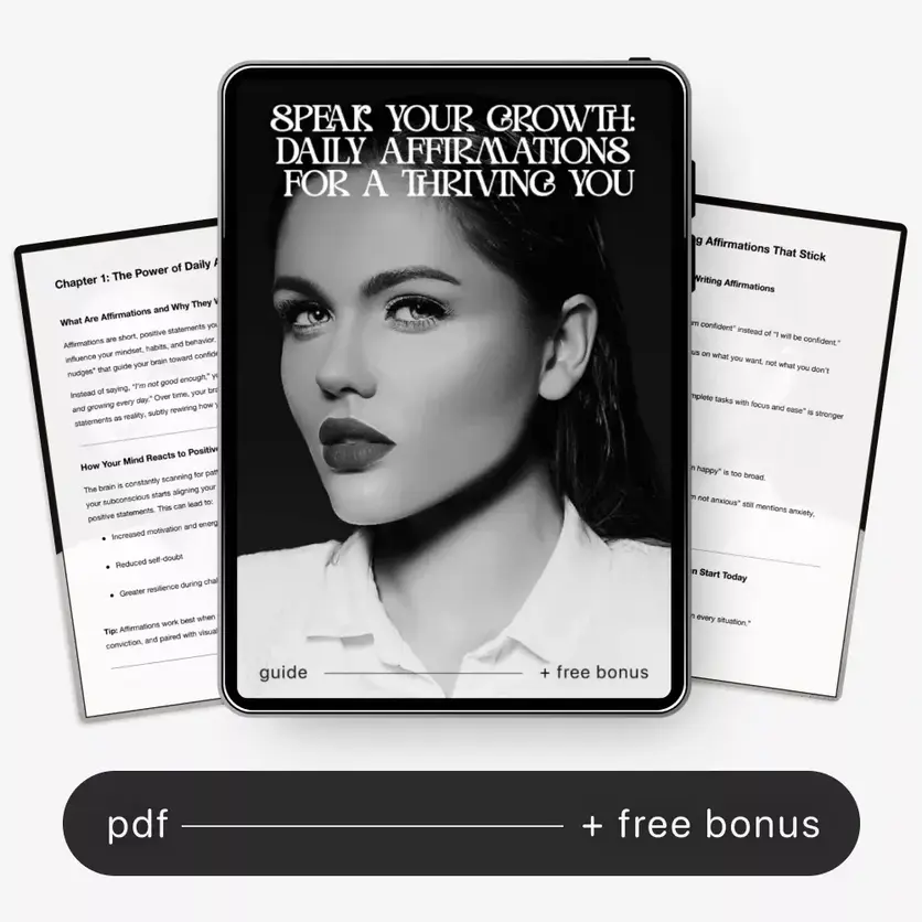 Start your journey today. Download Speak Your Growth: Daily Affirmations for a Thriving You and begin transforming your mindset, cultivating positive habits, and embracing the power of daily affirmations for self growth. Your future self will thank you.