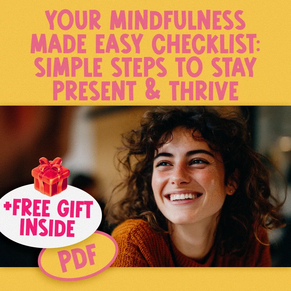 If you’ve ever said, “I want to feel more grounded,” or “I wish I knew how to be mindful and present,” this is your next step. “Your Mindfulness Made Easy Checklist: Simple Steps to Stay Present & Thrive” is more than a checklist—it’s a calm companion to help you build a life of presence, peace, and purpose. Download your copy now and take the first step toward thriving—one breath at a time.